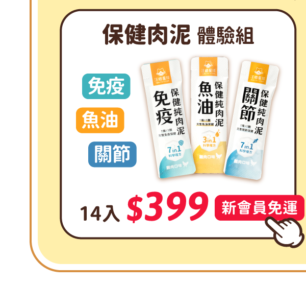 ✨ 保健肉泥新上市!新會員登入,一組就免運 >