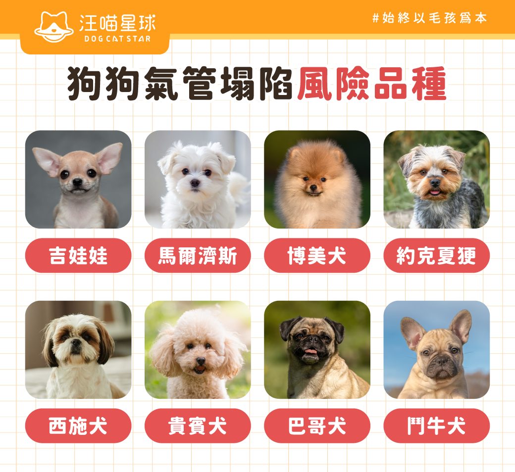 某些小型犬種(如吉娃娃、馬爾濟斯)天生氣管軟骨結構較脆弱,更容易發生塌陷。