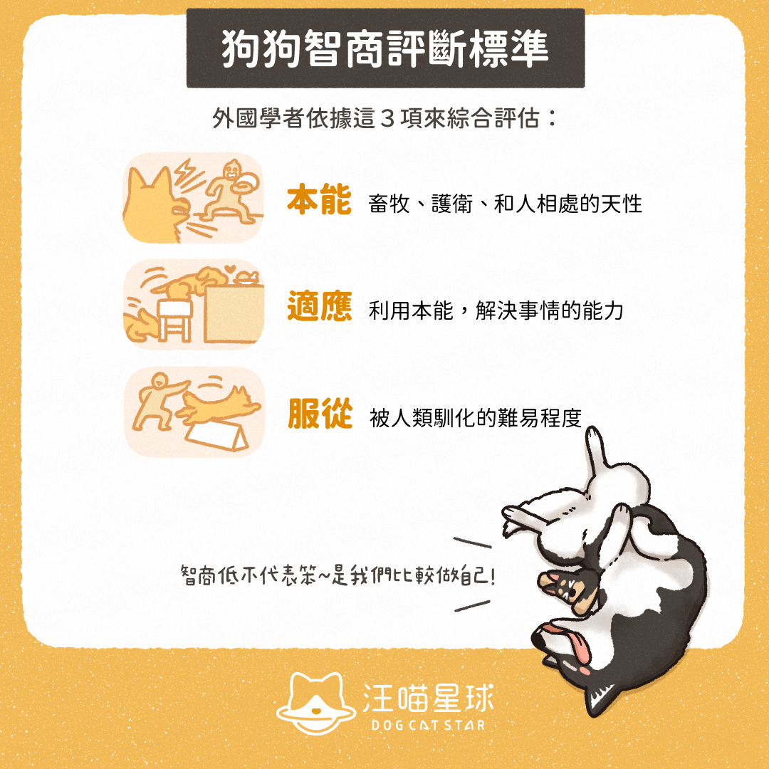 外國學者根據狗狗嘅三項特質嚟幫智商排名:本能、適應力、服從性。智商排得越後,唔代表狗狗「真係笨」,只係佢哋比較「做自己」、唔輕易向人低頭服從啫~