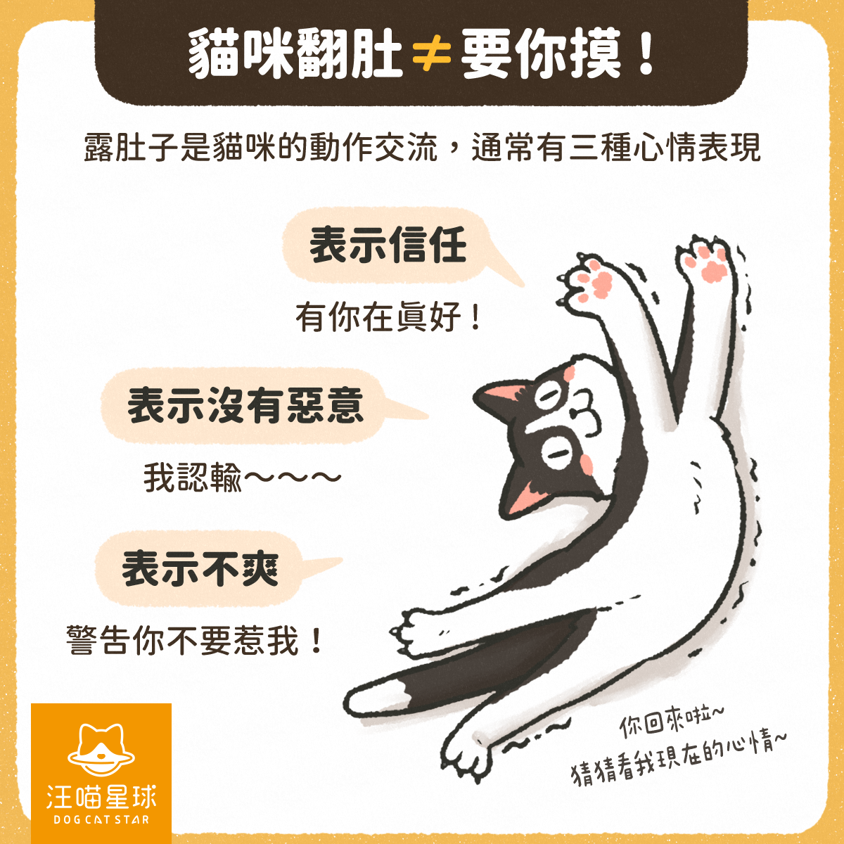 其實露肚皮係貓咪嘅肢體溝通,通常代表 3 種心情: