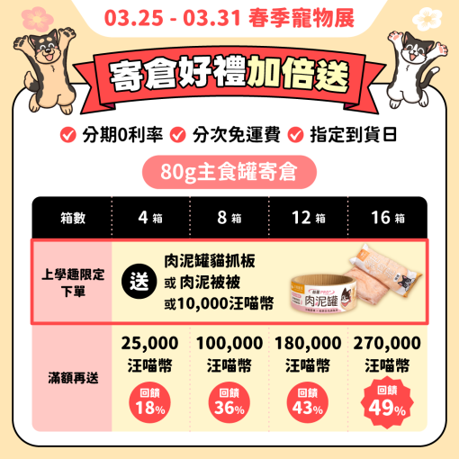 因使用冷凍乾燥技術保留營養,汪喵星球小方粒脫水生肉糧的孔隙較乾飼料大,受潮風險略高於乾飼料,建議毛爸媽們可以一次放少量至自動餵食機內,來減低受潮機率唷。