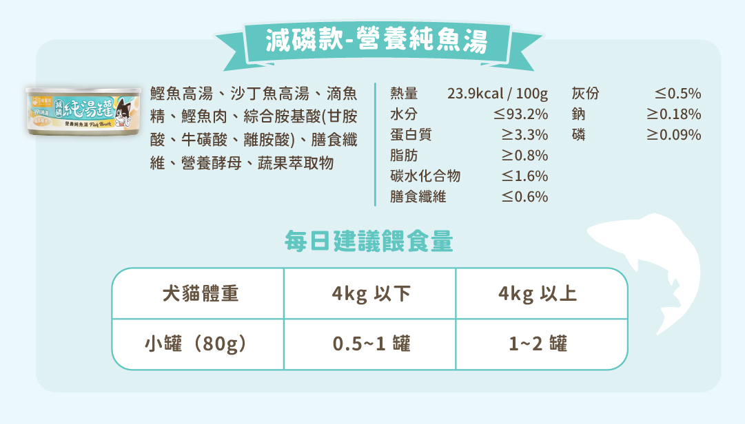 腎貓每日的「磷」攝取量有限,毛拔麻可計算扣除日常主食的磷攝取量後評估貓咪還可以喝多少純湯罐,也建議將成分截圖下來詢問信任的獸醫師喔!