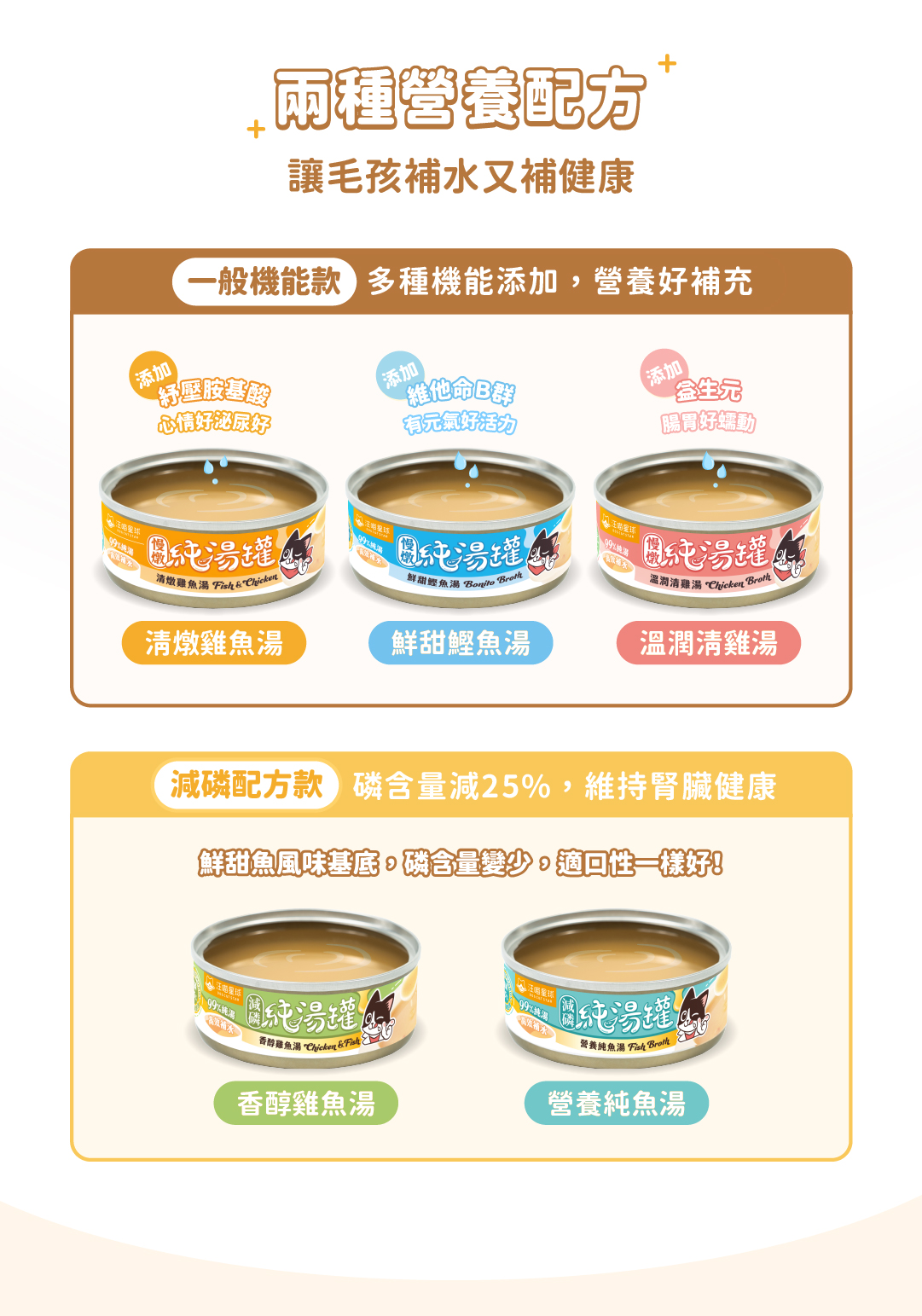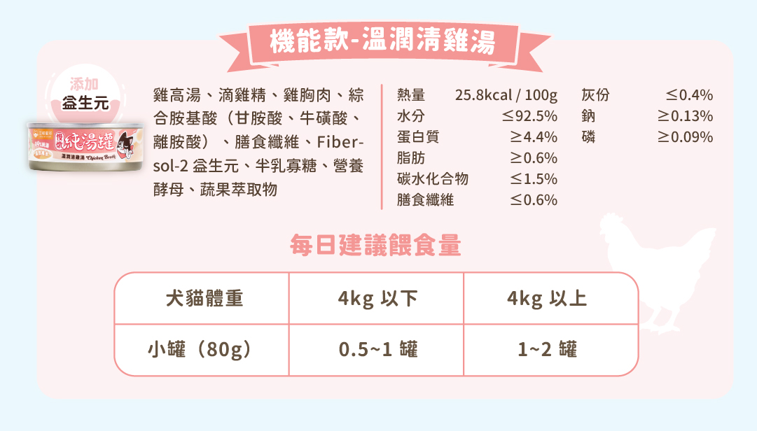 純湯罐與點心罐都是副食罐,日常皆需要搭配營養主食。