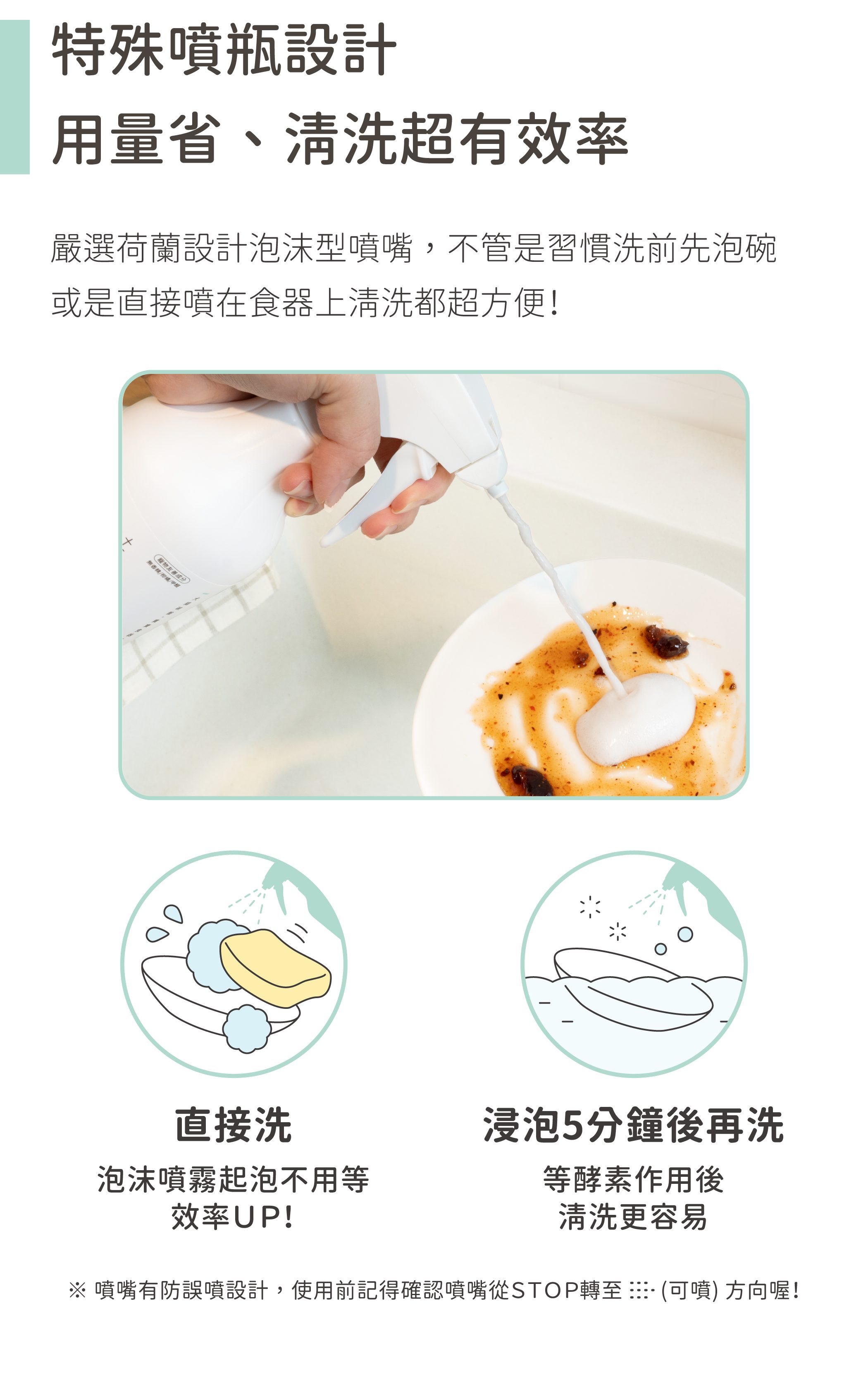 1. 新版配方含六合一綜合酵素,加速分解口水及食物中的脂肪、蛋白質、澱粉等;並新增「ECOCERT認證」天然成分的橄欖油界面活性劑,能快速帶走油垢,也因為此原料本身為黃色,因此新版的洗碗酵素顏色會呈現淡淡的黃色喔!