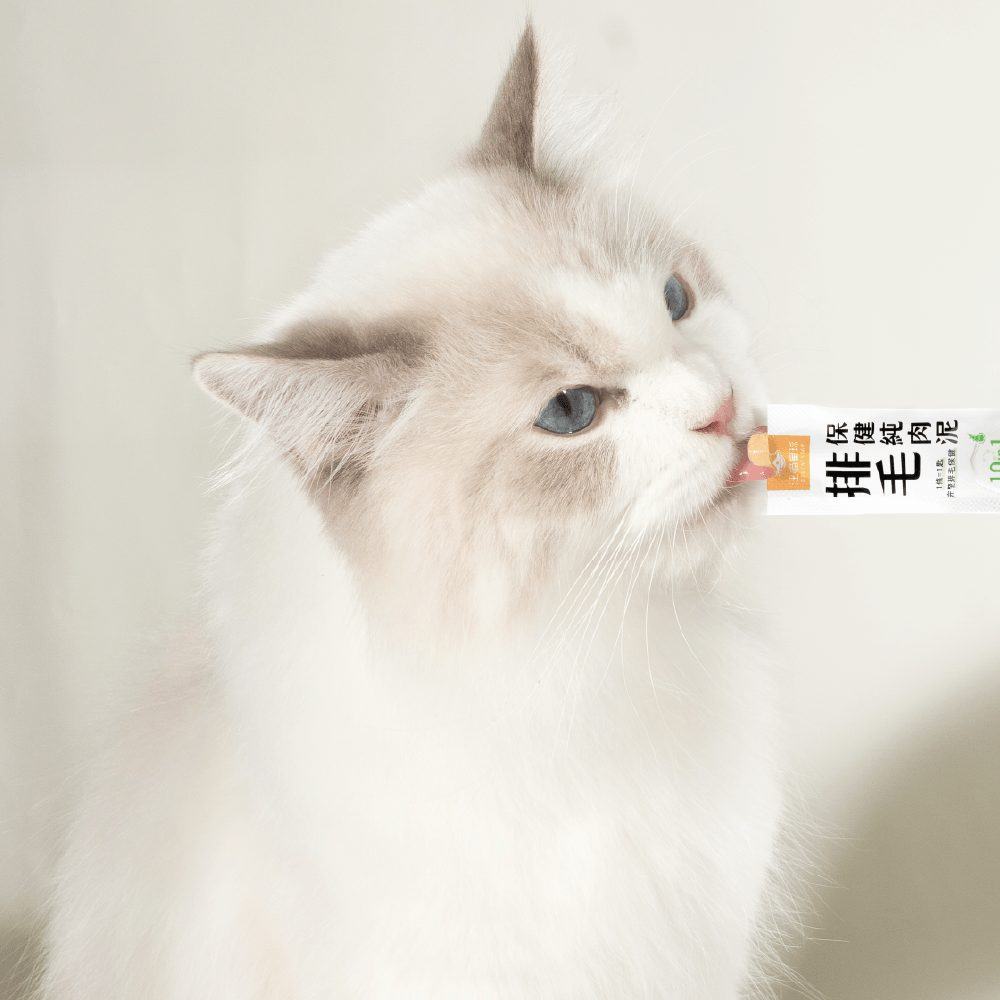 A:可以!保健肉泥設計為「可單獨使用,也能搭配其他保健品」,特別適合忙碌、外出或無法拌粉時靈活補充。若已經有吃排毛相關保健品,每日最多餵一條保健肉泥作為加強即可,不建議過量。