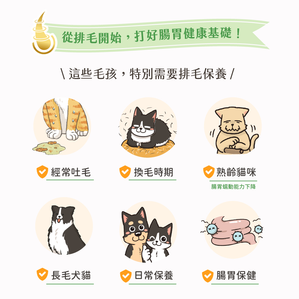 A:三個月以上的犬貓都可食用。若毛孩有特殊健康狀況,建議先諮詢獸醫再補充。