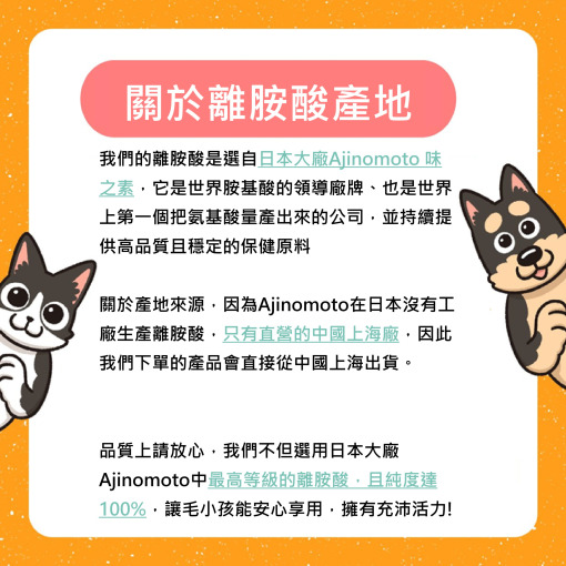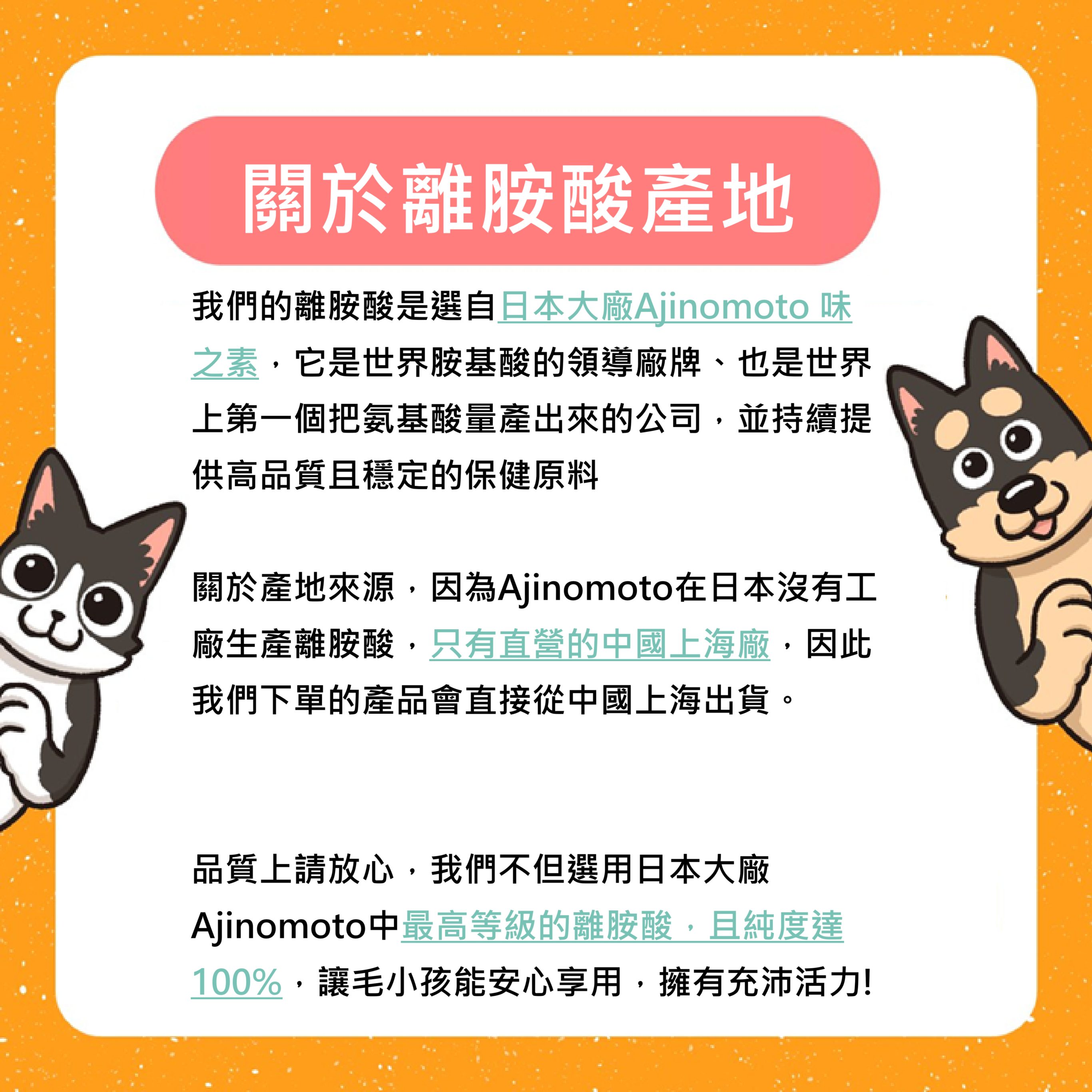• 100%日本製藥大廠 Ajinomoto 純淨離胺酸