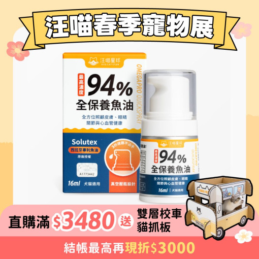 汪喵星球 高濃度94% 全保養魚油壓瓶 | 不粘手、犬貓適用