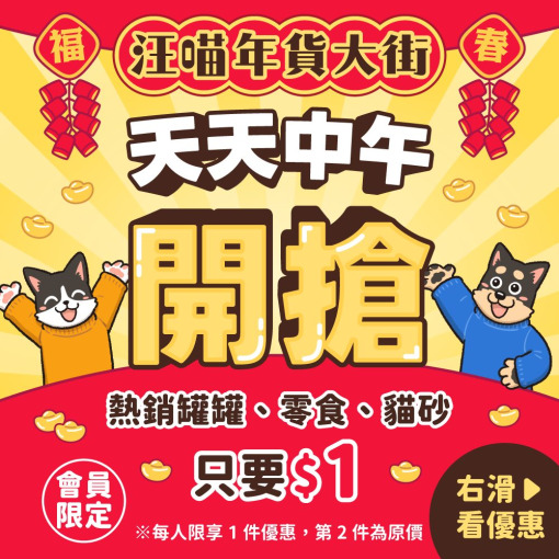 【2026 汪喵年貨大街】$1 罐罐零食貓砂搶購