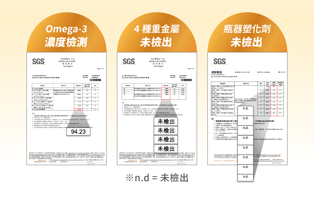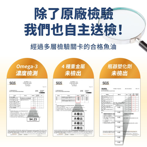 壓瓶瓶身除了使用鍍銀隔絕光氧化,也選用真空壓瓶,減少魚油接觸氧氣導致氧化的風險。瓶身也自主額外送檢,確保使用上除了方便,也更安全!