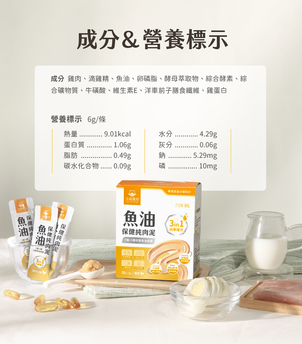 可以!保健肉泥設計為「可單獨使用,也能搭配其他保健品」,特別適合忙碌、外出或無法拌粉時靈活補充。若已經有吃魚油相關保健品,每日最多餵一條保健肉泥作為加強即可,不建議過量。