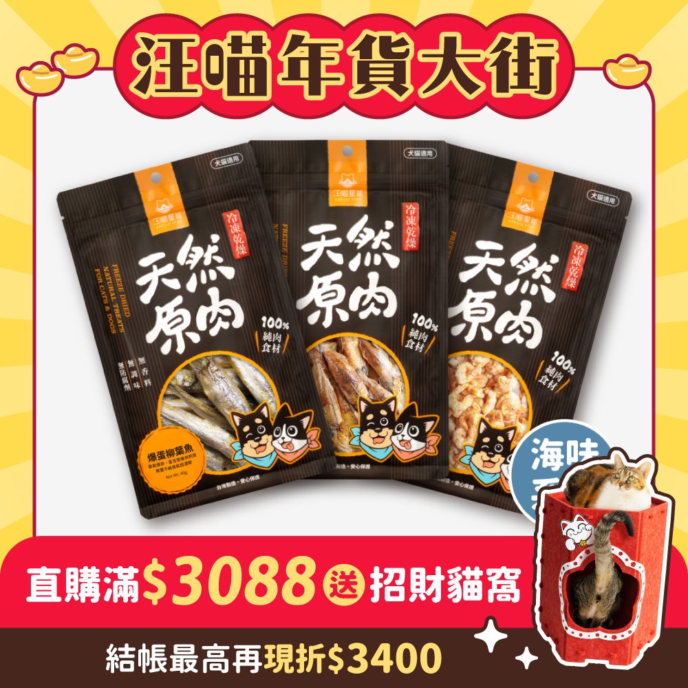 汪喵凍乾小零嘴可常溫保存,因採用目前最好的「冷凍乾燥技術製作」,除食材本身營養無其他添加物,給毛孩自然無負擔的寵愛。